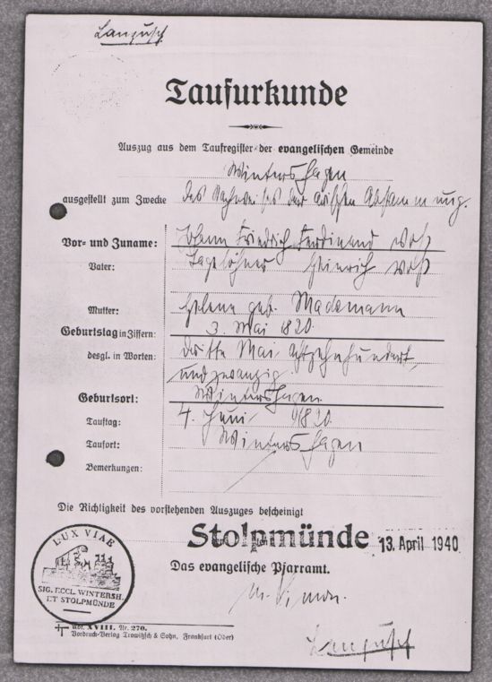 Pfarramtes Stolpmünde sind nicht ganz korrekt. Wintershagen d.